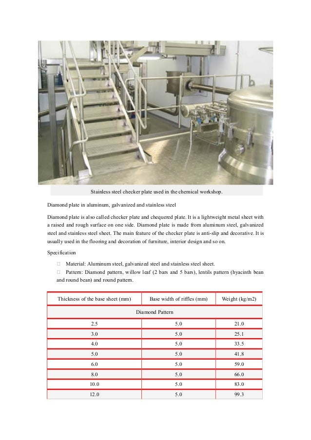 Chequered Plate for Flooring, Stair Tread, Chair Rail, Door Kick Plate. Stainless steel and aluminum diamond chequered plate/checkered plate is usually used for diamond plate chair rail, door kick plate, stair tread plate and flooring. Below is the Hot specifications ordered by customers. ... Retrieve Document